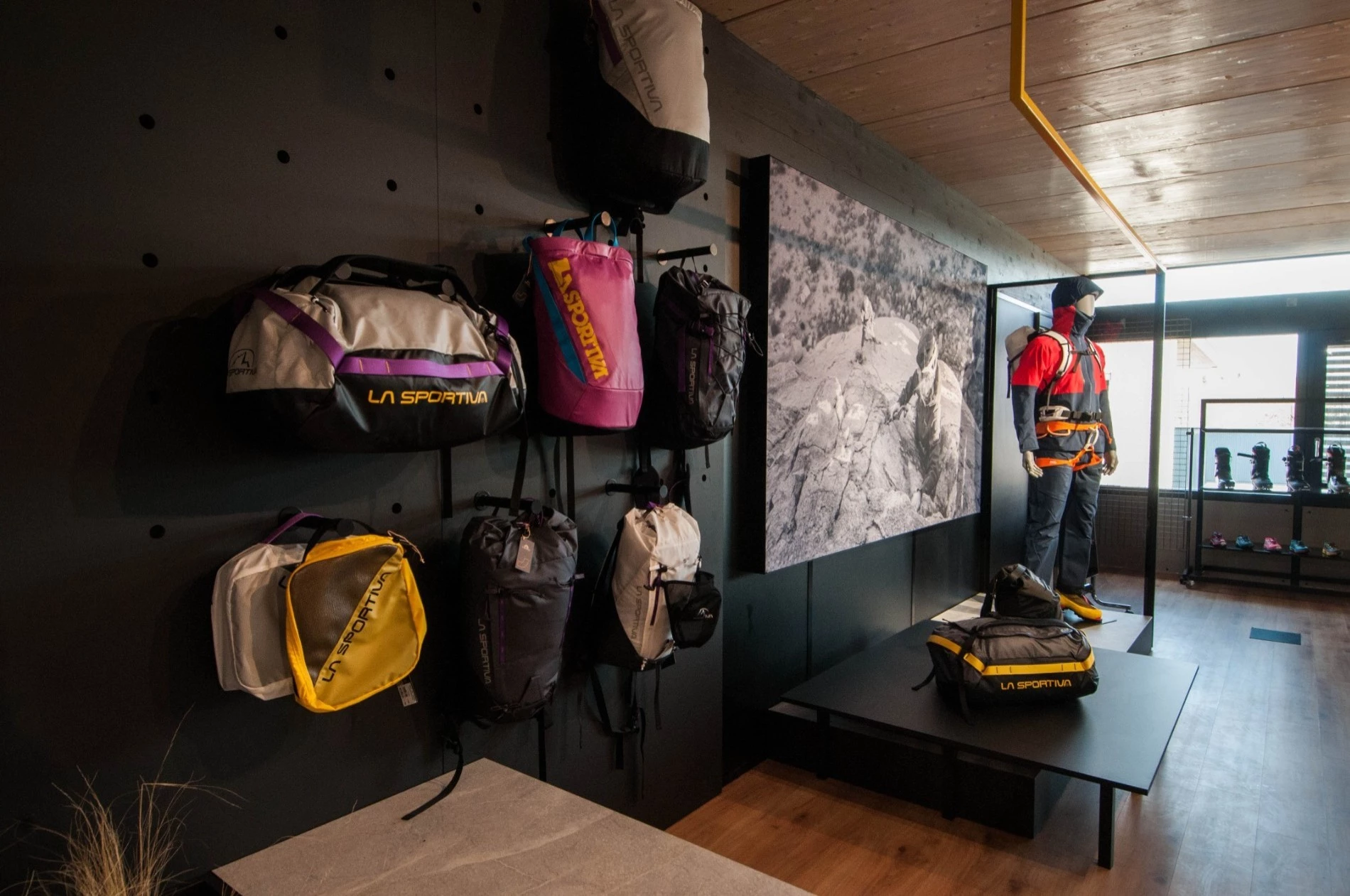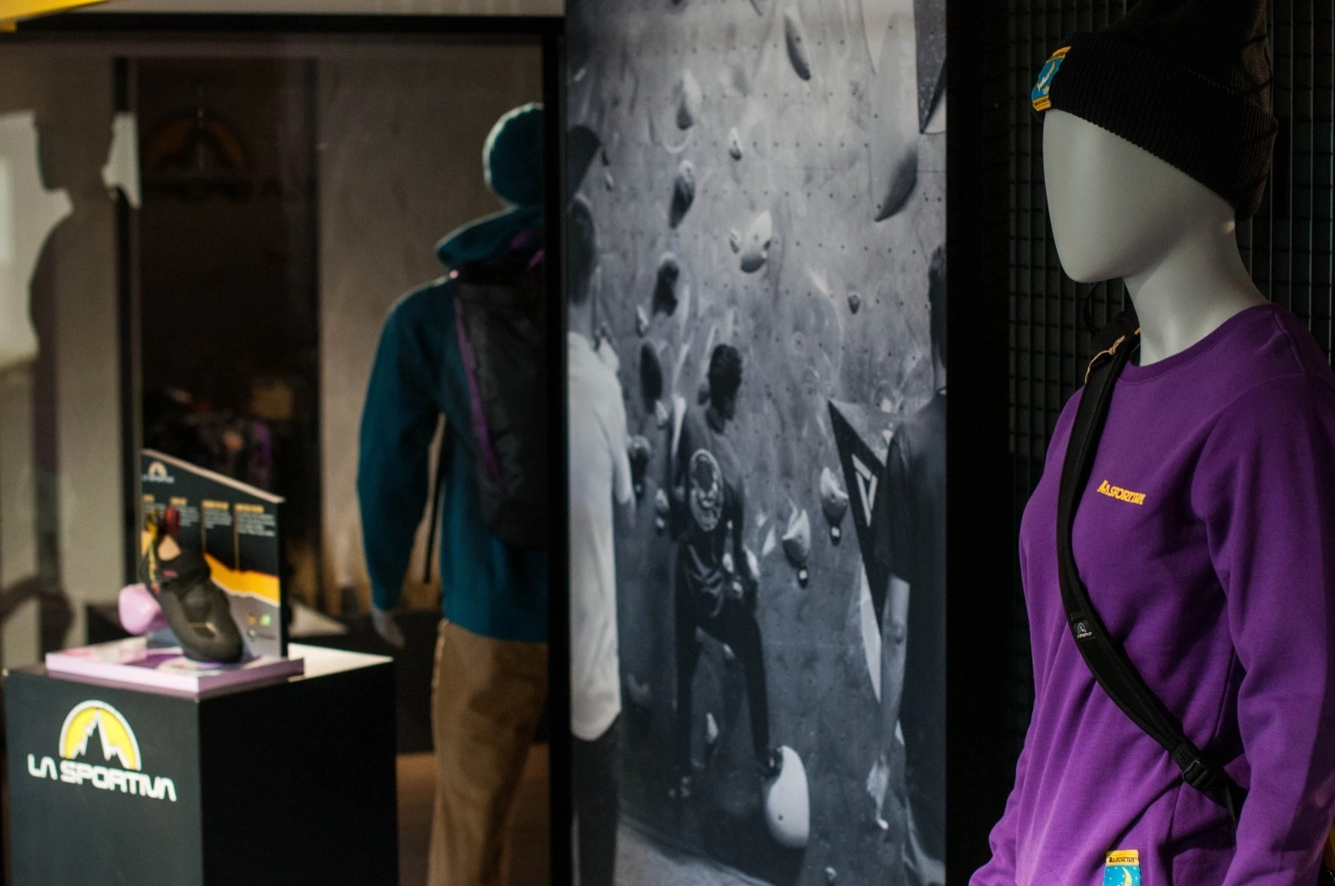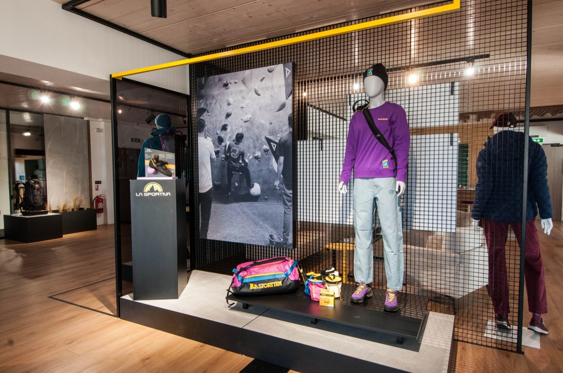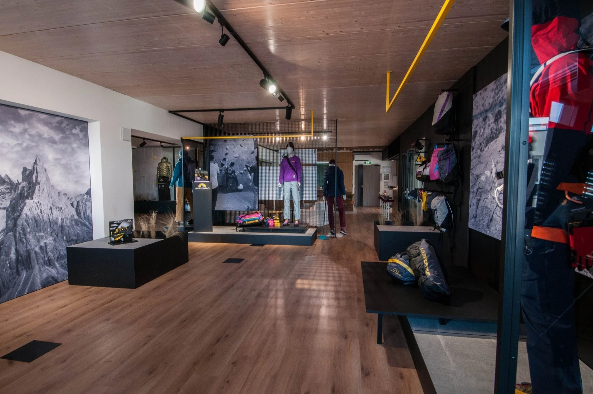 Marque italienne née au cœur des Dolomites, La Sportiva garde une dimension très humaine : une culture du savoir-faire, du produit bien fait et de la passion du terrain. Nous avons voulu que cette authenticité se ressente dès l’entrée dans le showroom.